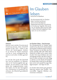 Direkt im anschluss an diese großartigeverheißung steht der bemerkenswerte satz:.. . „der gerechte aber wird aus glauben leben" (heb 10,38).für uns stellt sich da die frage: